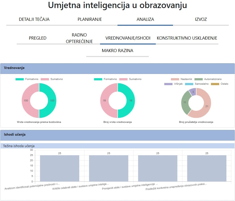 - learning/design analytics ploča: vizualizacija ravnoteže između ciljeva, aktivnosti i ocjenjivanja