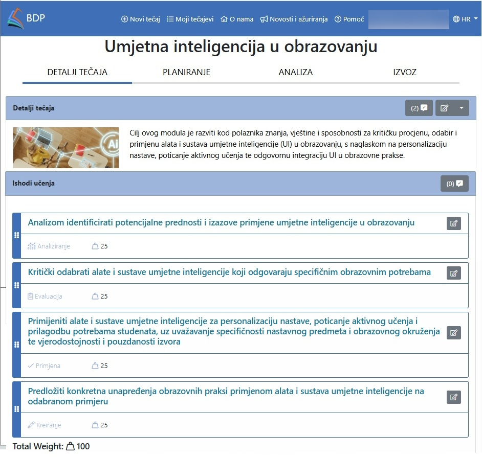 The BDP tool is available free of charge as an online solution at the link and is an example of an innovative digital tool aimed at aligning with learning outcomes. Its key features are as follows: