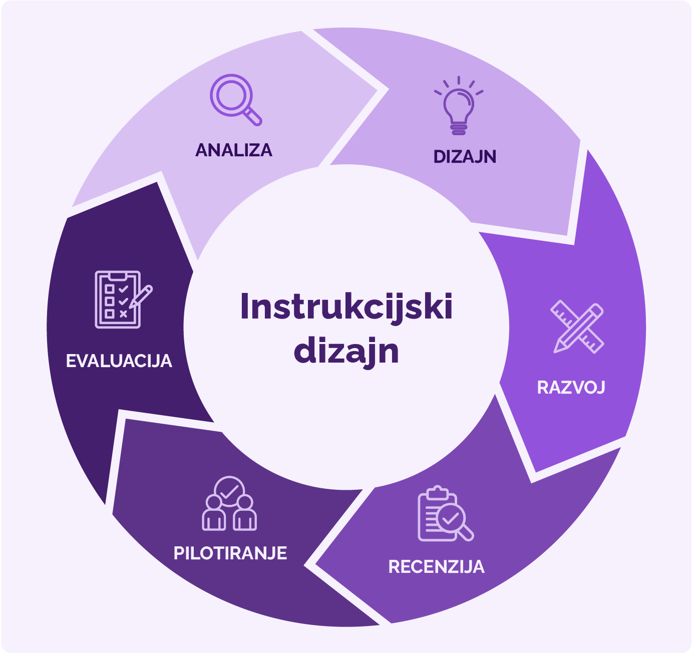 Specifičnost instrukcijskog dizajna očituje se u njegovoj sustavnoj i svrhovitoj organizaciji obrazovnog procesa koji počinje analitičkom identifikacijom obrazovnih potreba ciljane skupine. U kontekstu visokog obrazovanja to podrazumijeva analizu razine prethodnih znanja studenata, njihova iskustva s predmetnom tematikom, akademske vještine (npr. razina razvijenosti kritičkog mišljenja ili sposobnosti samostalnog učenja), ali i institucionalne zahtjeve, ishode kvalifikacijskog okvira te očekivanja tržišta rada. Na temelju tih uvida oblikuju se jasno operacionalizirani ishodi koji ne ostaju na razini deklarativnih ciljeva, već se konkretiziraju u ponašanjima i znanjima koja studenti trebaju demonstrirati po završetku kolegija ili obrazovne cjeline. Odabir i strukturiranje nastavnih sadržaja odvija se u skladu s navedenim ishodima.