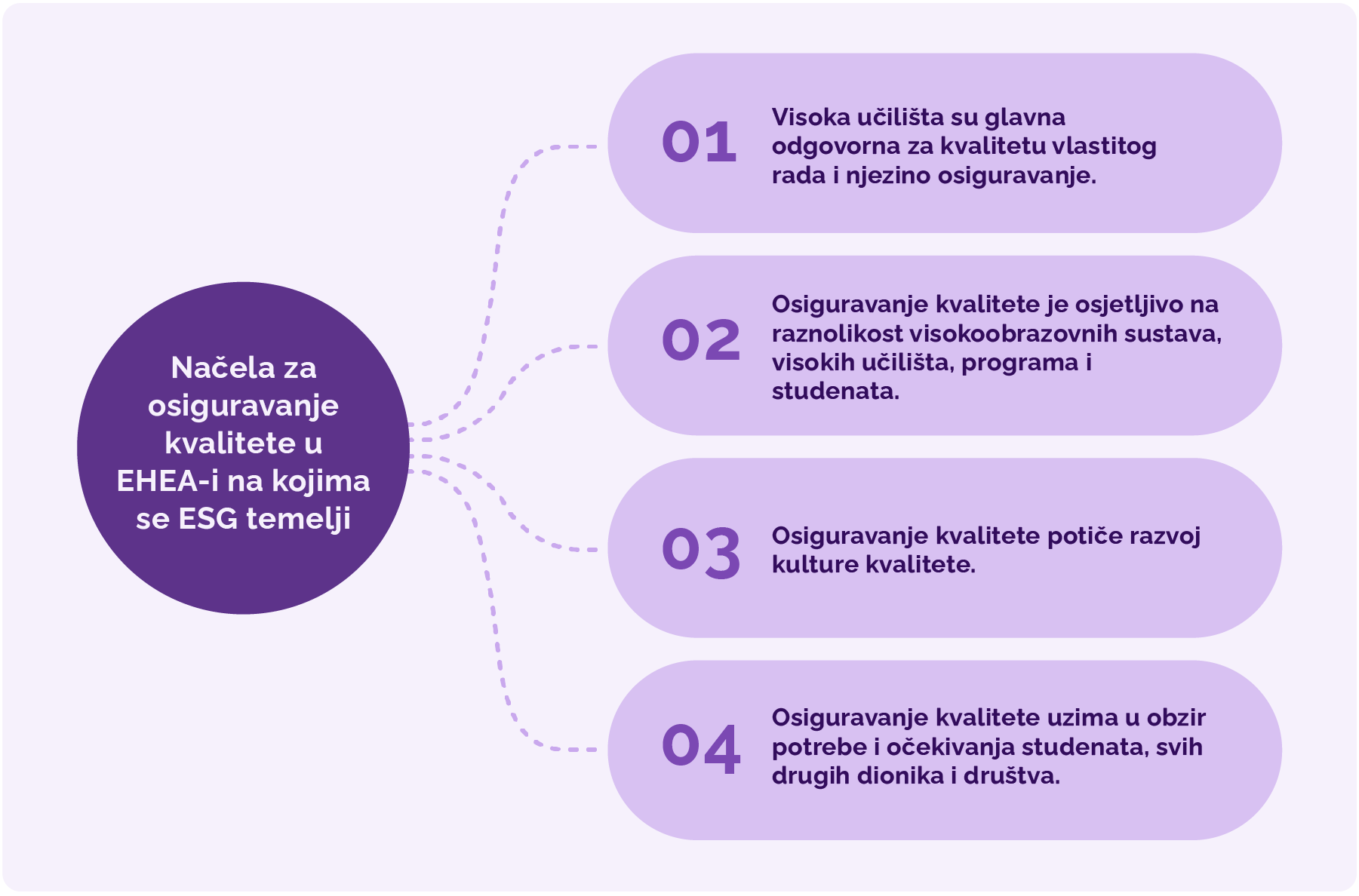 ESG se temelji na sljedeća četiri načela za osiguravanje kvalitete u EHEA-i: